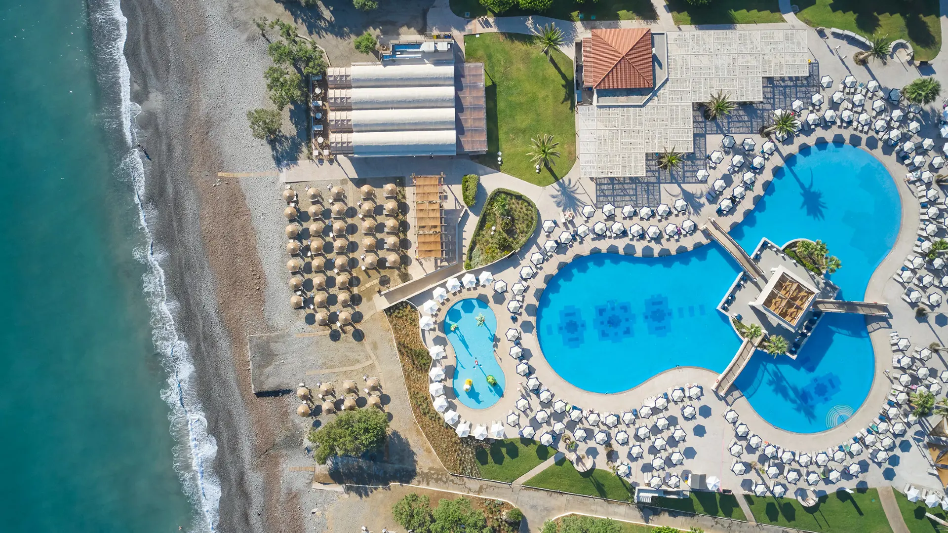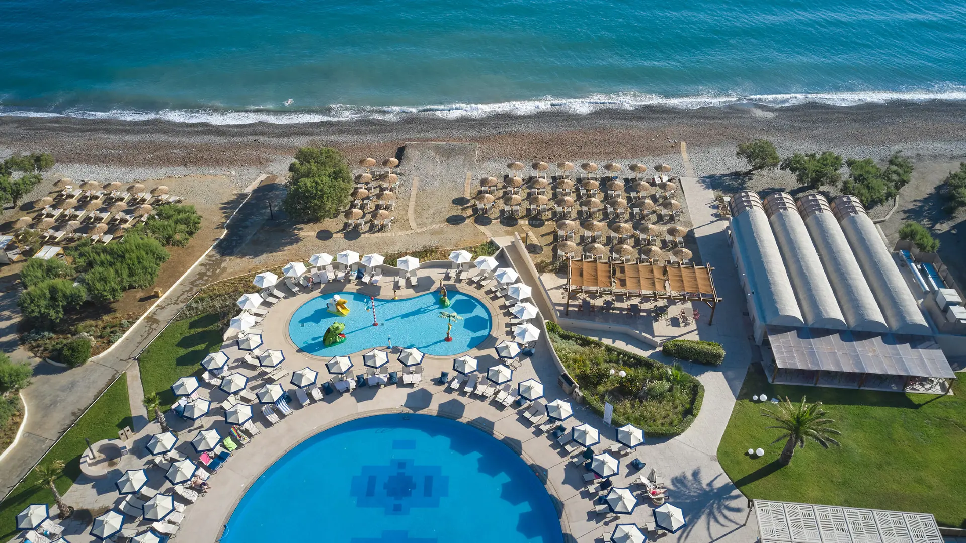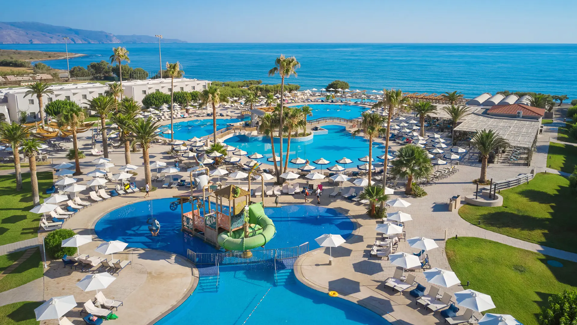 Populært strandhotel i Maleme med aquapark, flere pools, børnefaciliteter og All Inclusive for en komplet ferieoplevelse.