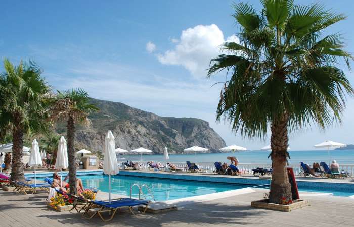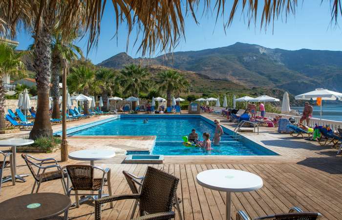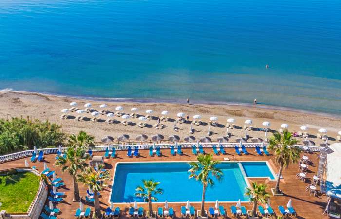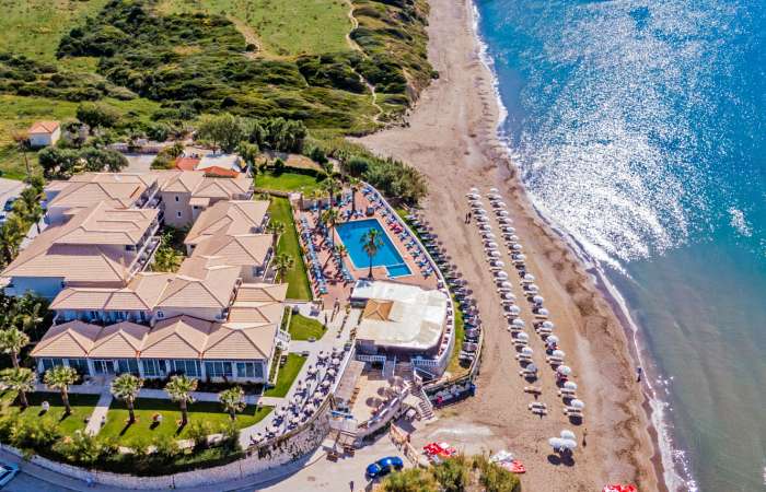 Crystal Beach er for alle, der sætter pris på en fantastisk beliggenhed direkte til den smukke sandstrand i Kalamaki, som er en af øens flotteste. Her er de perfekte rammer for en optimal og afslappende ferie. De fleste udendørs områder betyder enestående udsigt til det smukke Middelhav. På den flotte sandstrand lige nedenfor hotellet findes liggestole og parasoller.