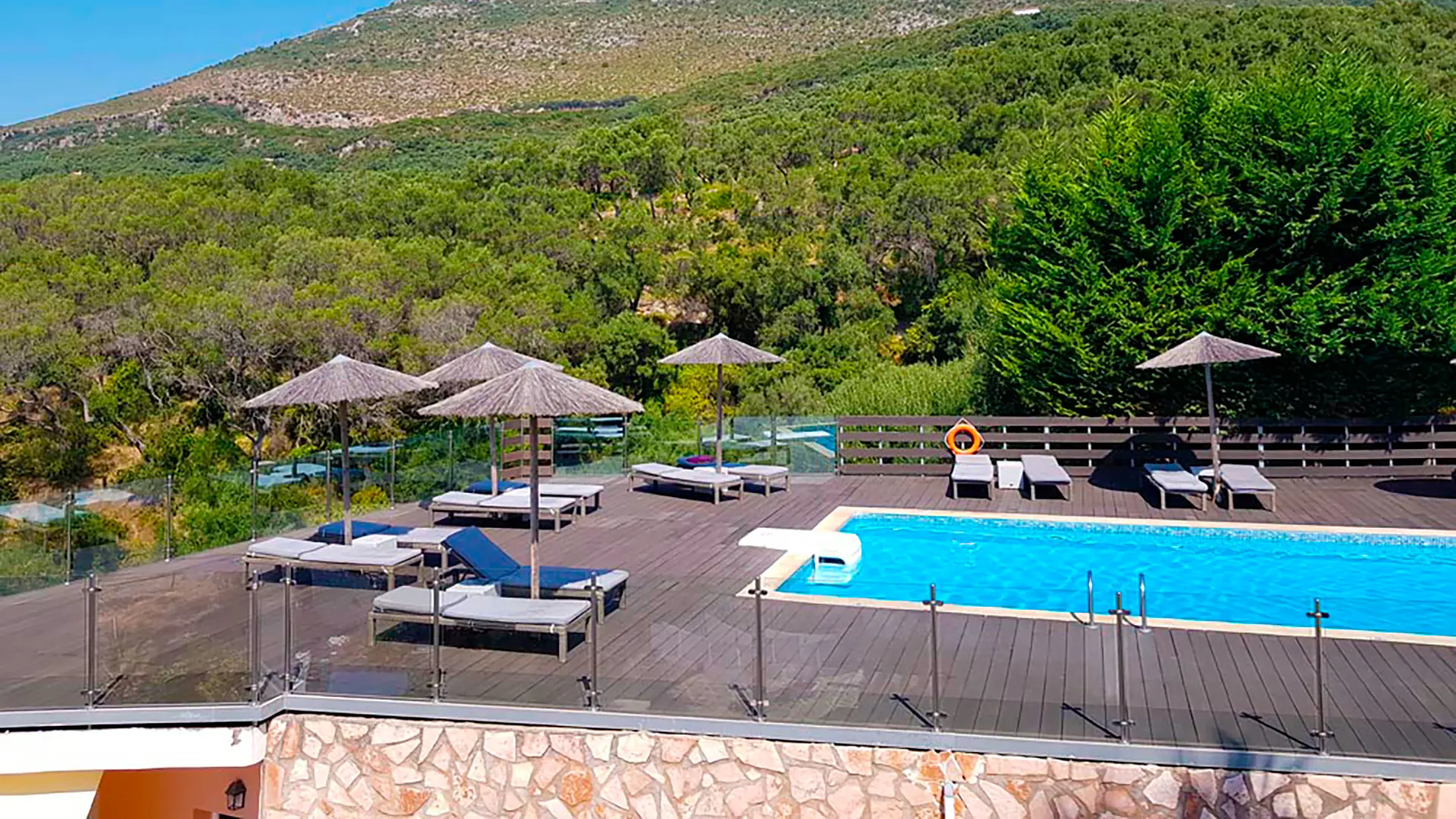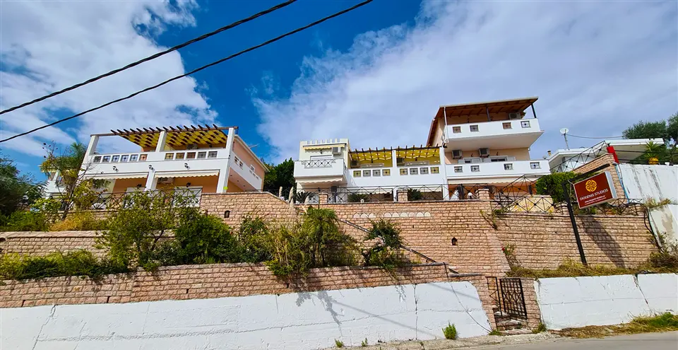 Hyggeligt lejlighedshotel på bjergsiden med udsigt over Valtos-bugten og tæt på Valtos-stranden. Hotellet har en solterrasse med pool, bar og liggestole. Kun 10 minutters gang til Pargas smukke havnepromenade. Perfekt til strandferie og lokal udforskning.