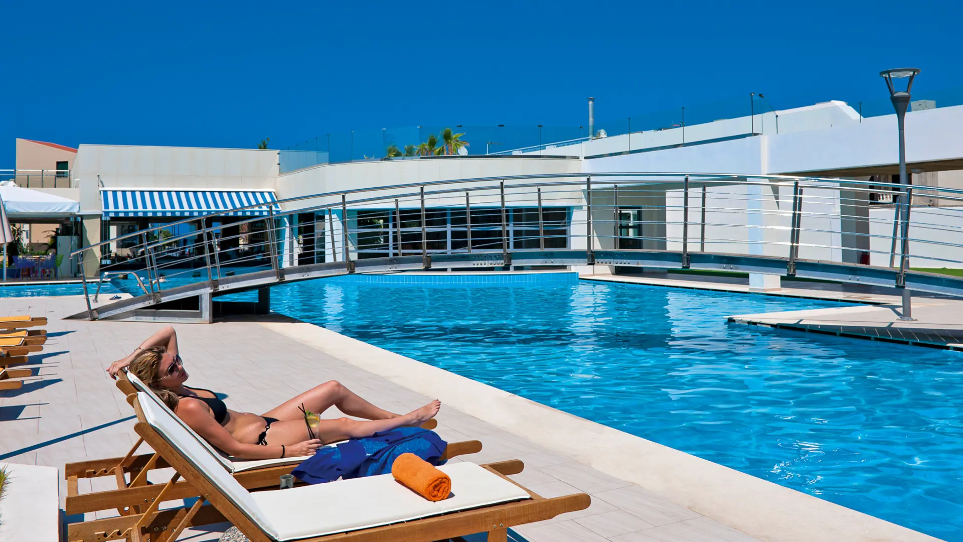 Moderne 4-stjernet hotel beliggende i feriebyen Agia Marina med kort afstand til den børnevenlige sandstrand og gåafstand til lokalt centrum.