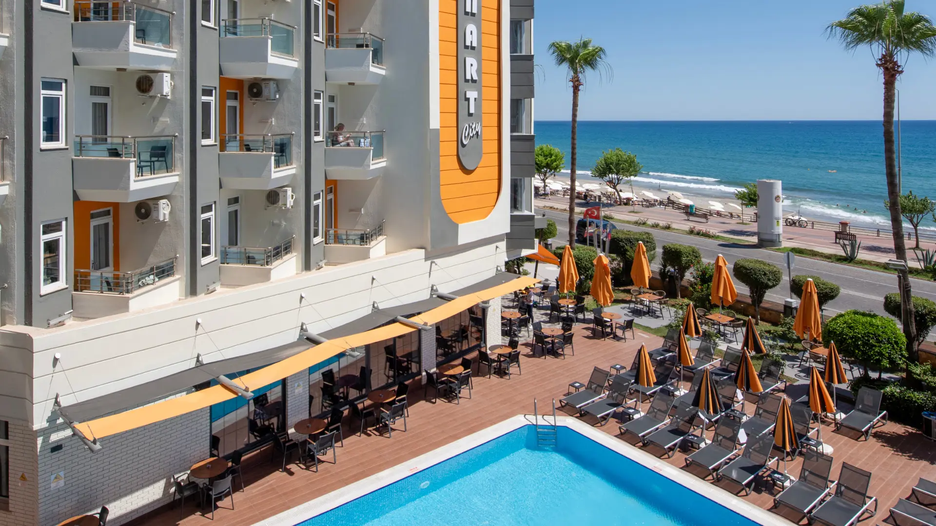 Monart City er et dejligt og meget velfungerende hotel, beliggende på den populære strandvej ved Øststranden i Alanya. Det er et hotel med en god og familiær stemning og gode faciliteter - herunder vandrutsjebane.