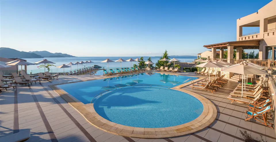 Overalt er det den betagende udsigt, som brænder sig fast på nethinden. Solterrassen er en verden for sig med sine imponerende azurblå swimmingpools og skønne opholdsområder med solstole og parasoller. Sivota Diamond Spa Resort har fået tildelt flere æresbevisninger grundet det høje service- og kvalitetsniveau og de skønne omgivelser. Sivotas charmerende havnepromenade og flere små bugter ligger i gåafstand fra hotellet.